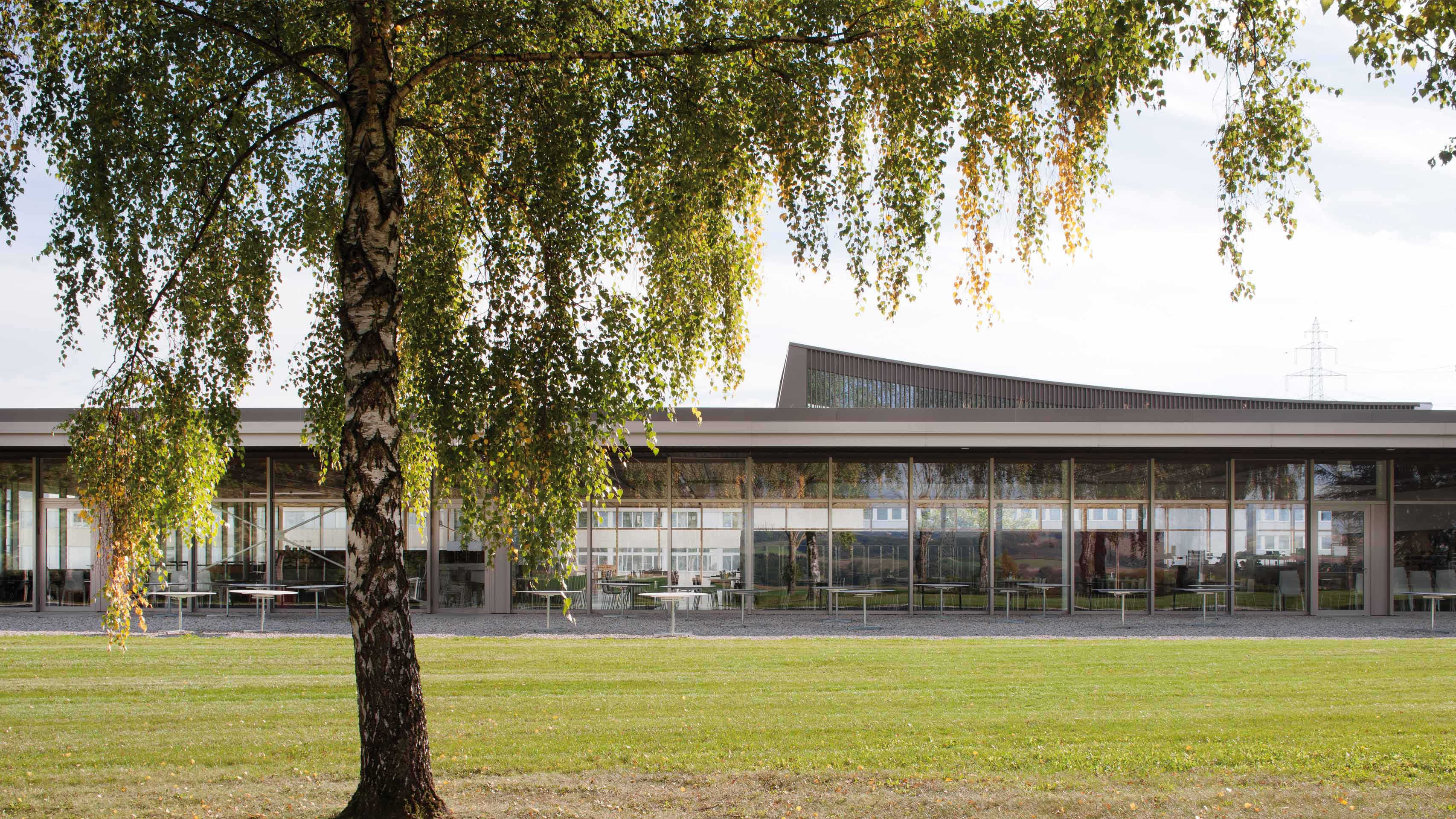 Ce projet d’aménagement et d’extension d’un site industriel situé dans la campagne vaudoise explore la richesse des relations entre l’ensemble bâti et le paysage rural environnant. A l’Ouest de l’agglomération lausannoise, dans un cadre bucolique, le Groupe Bobst occupe depuis 1974 une parcelle de 29 hectares, à cheval sur les Communes de Mex, de Villars-Sainte-Croix et de Vufflens-la-Ville. En 2012, l’entreprise regroupe sur son site de Mex la totalité de son activité de production, jusque-là distribuée sur deux sites, accroissant de 14'000 m2 la surface de son usine. A l’entrée du site, un nouveau bâtiment prend place. Il abrite le siège mondial du Groupe ainsi qu’un espace d’exposition et de formation de 4’000m2, le “Competence Center”. Venant compléter les équipements communs, un nouveau bâtiment implanté en bordure du centre sportif accueille le restaurant d’entreprise et une crèche pour quarante enfants.