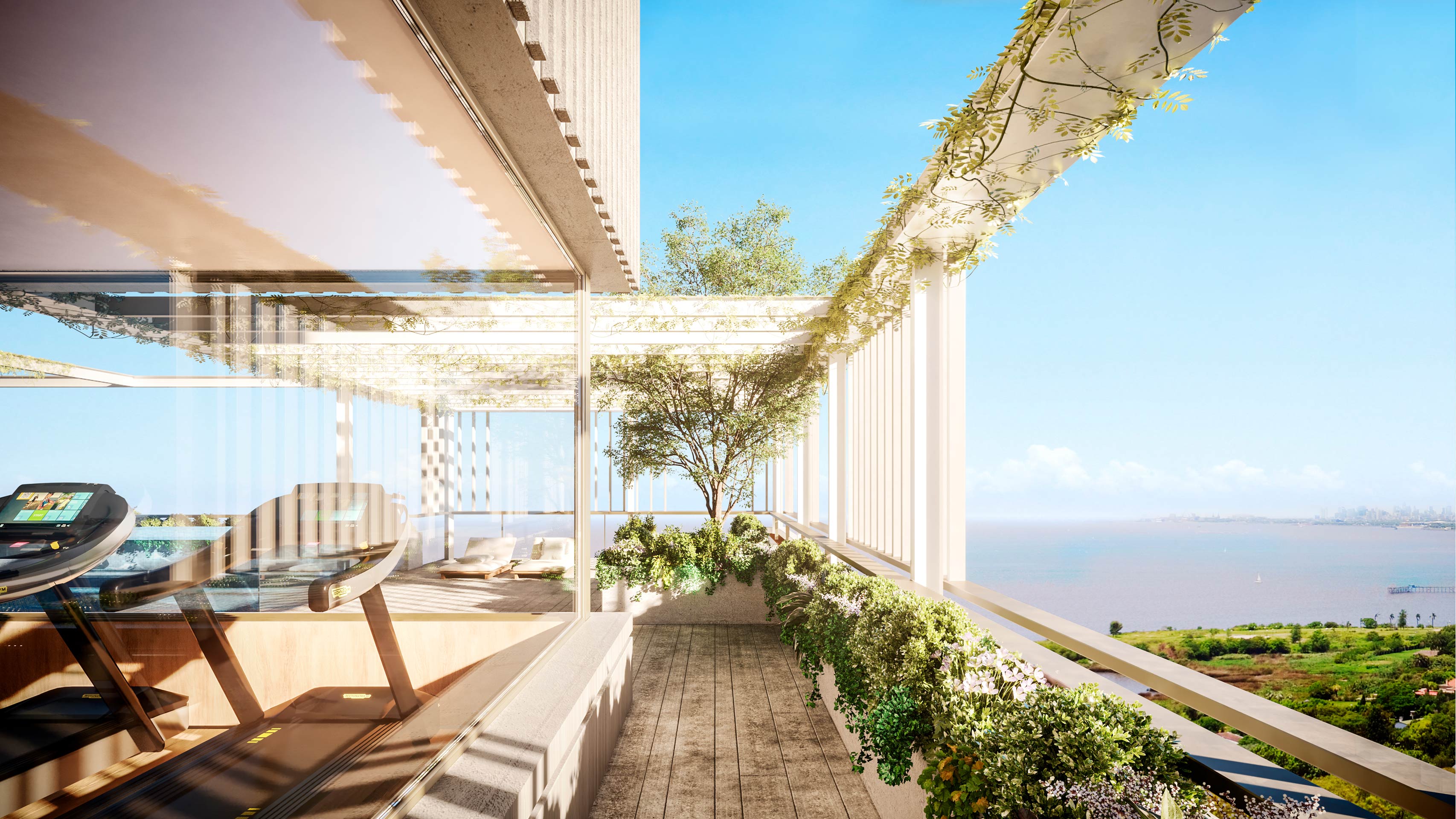 The project recognizes the need to offer a distinctive element on the great avenue. These vertical gardens guarantee solar protection by improving thermal regulation and contribute to the privacy of the lower units on the avenue. Rainwater is recovered to clean sidewalks and water plants, generating savings and cushioning the initial impact of storms. Bioenergetic wood pellet heating reduces the building's carbon footprint. The centralized system is highly efficient and has individual consumption meters.