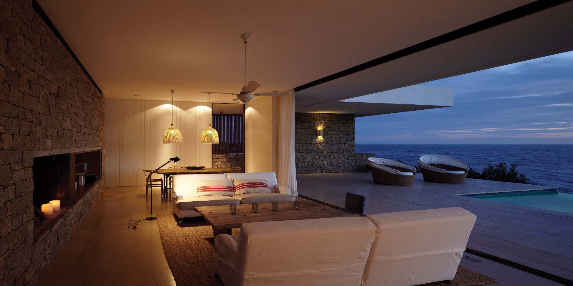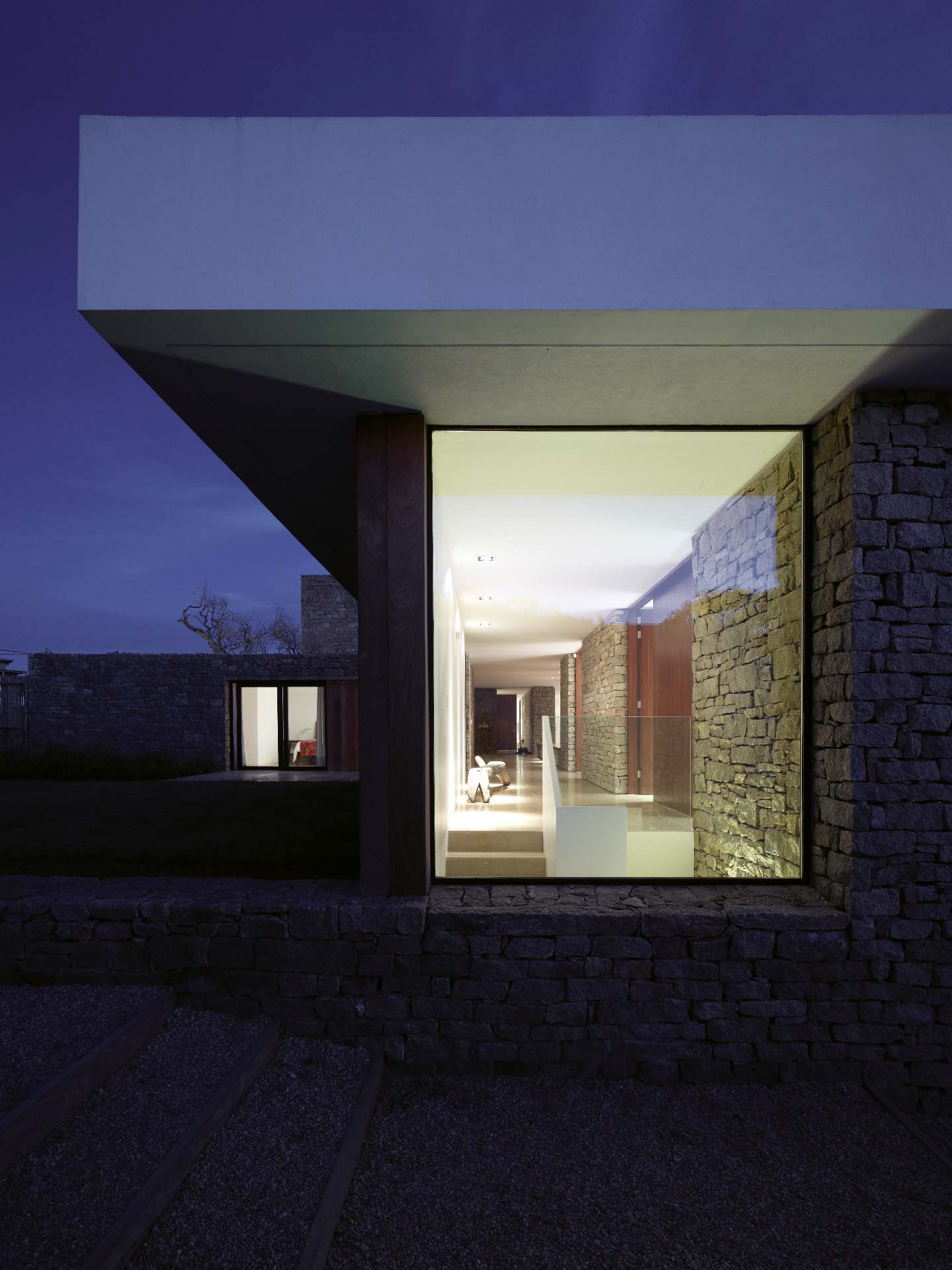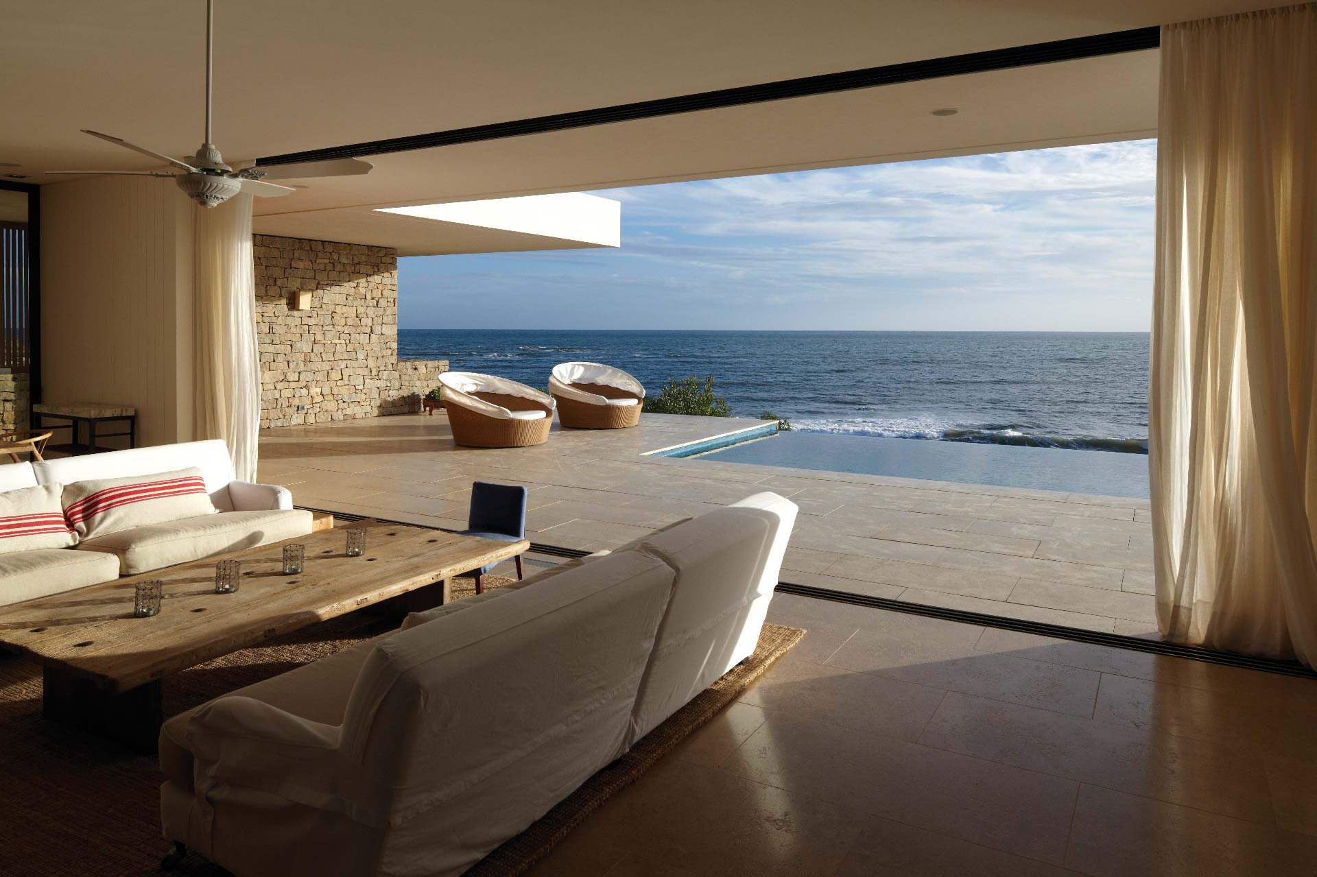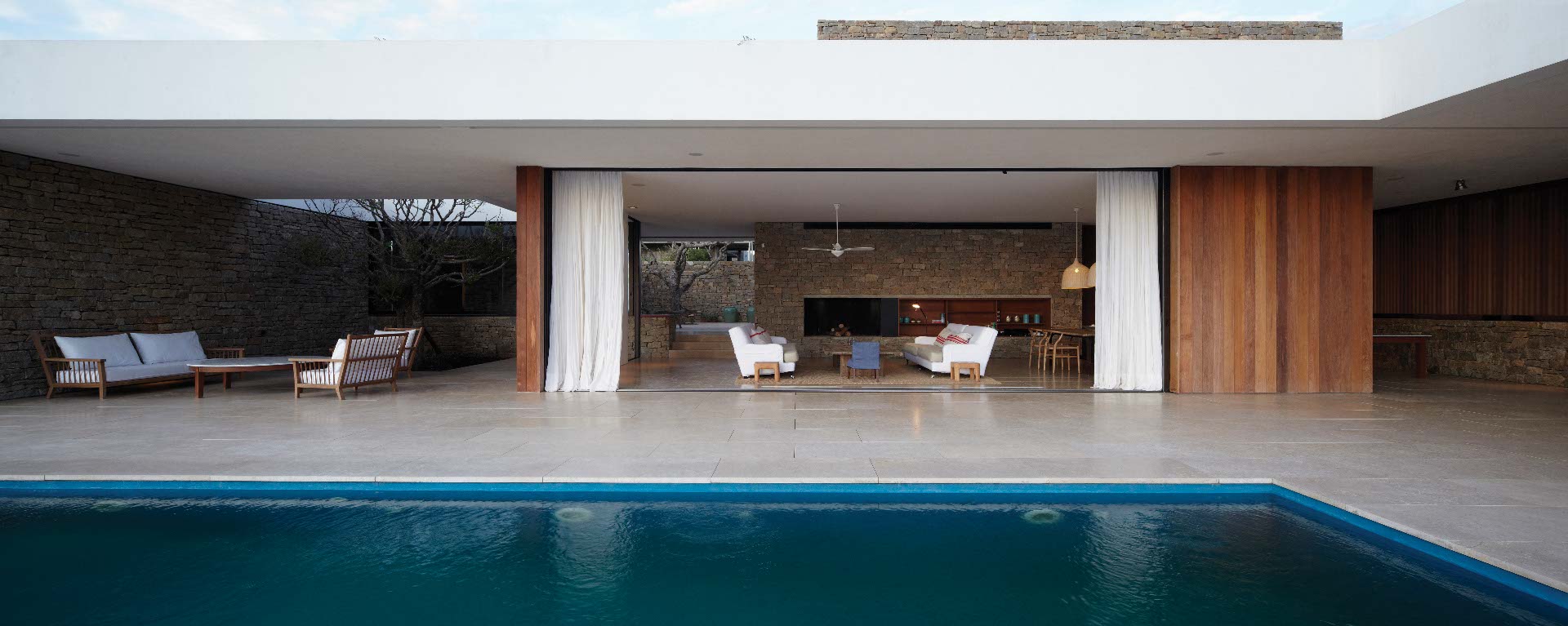 This family holiday home, used continuously in summer and occasionally in winter, is located by the sea on a privileged plot on the calm beach of José Ignacio. The site slopes gently towards the sea and offers views to the west towards the sunset. On one side, to the south, is one of the access roads to the beach, which is very busy in summer. The programme is developed almost entirely on a single floor that is slightly staggered following the natural slope of the land. The house consists of a series of stone-walled pavilions, separated by courtyards and covered by a large vegetated slab. This garden roof is a powerful horizontal gesture that connects the house with the sunset on the sea horizon. Both elements define the social area of the house as a sequence of outdoor, indoor and semi-covered spaces that relate to each other, creating different conditions of use adapted to the climatic variables of the location. The large sliding windows allow the house to be enjoyed in summer as a large shaded outdoor space. The house is consolidated on the south elevation, where the service functions are located, seeking protection from the wind and the public access road to the beach. The tower on the corner defines its discreet presence in the landscape of the village of José Ignacio.