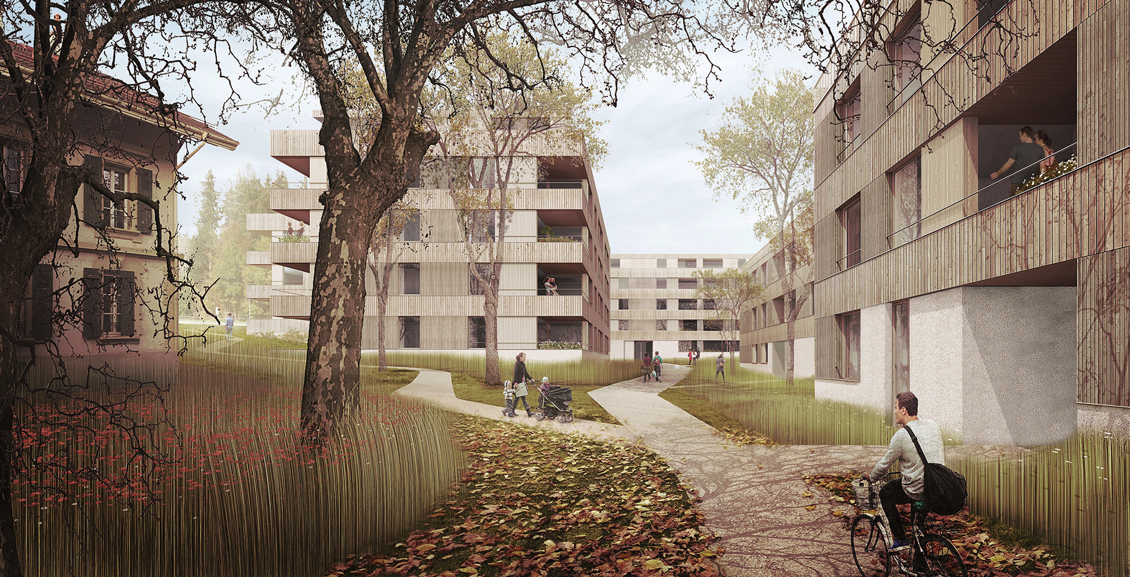 The three buildings, which have been awarded the Minergie-P-Eco© label, house 90 affordable rental apartments. The building bordering the protected natural area to the east and closing off the built complex contains the four-room apartments, while the other two buildings mainly house two- and three-room apartments.