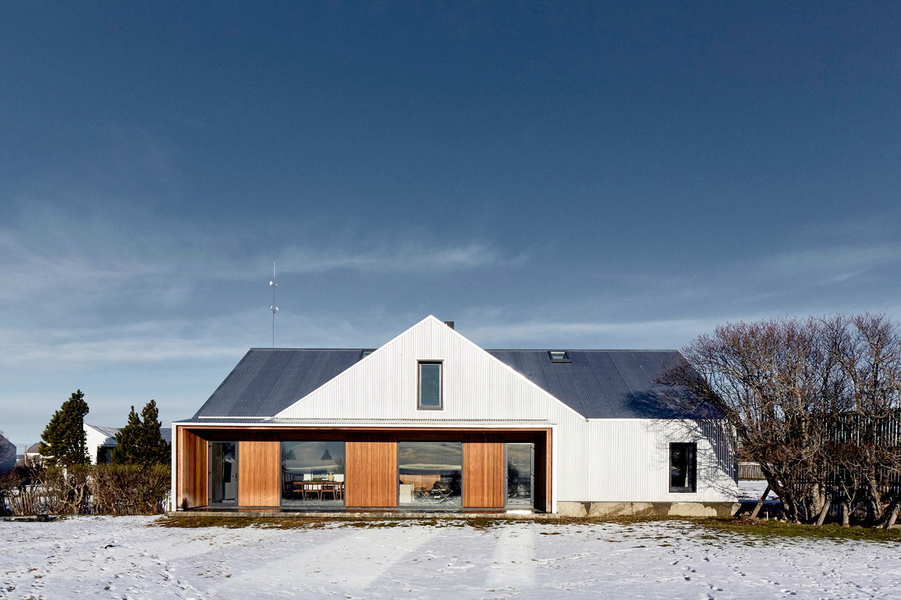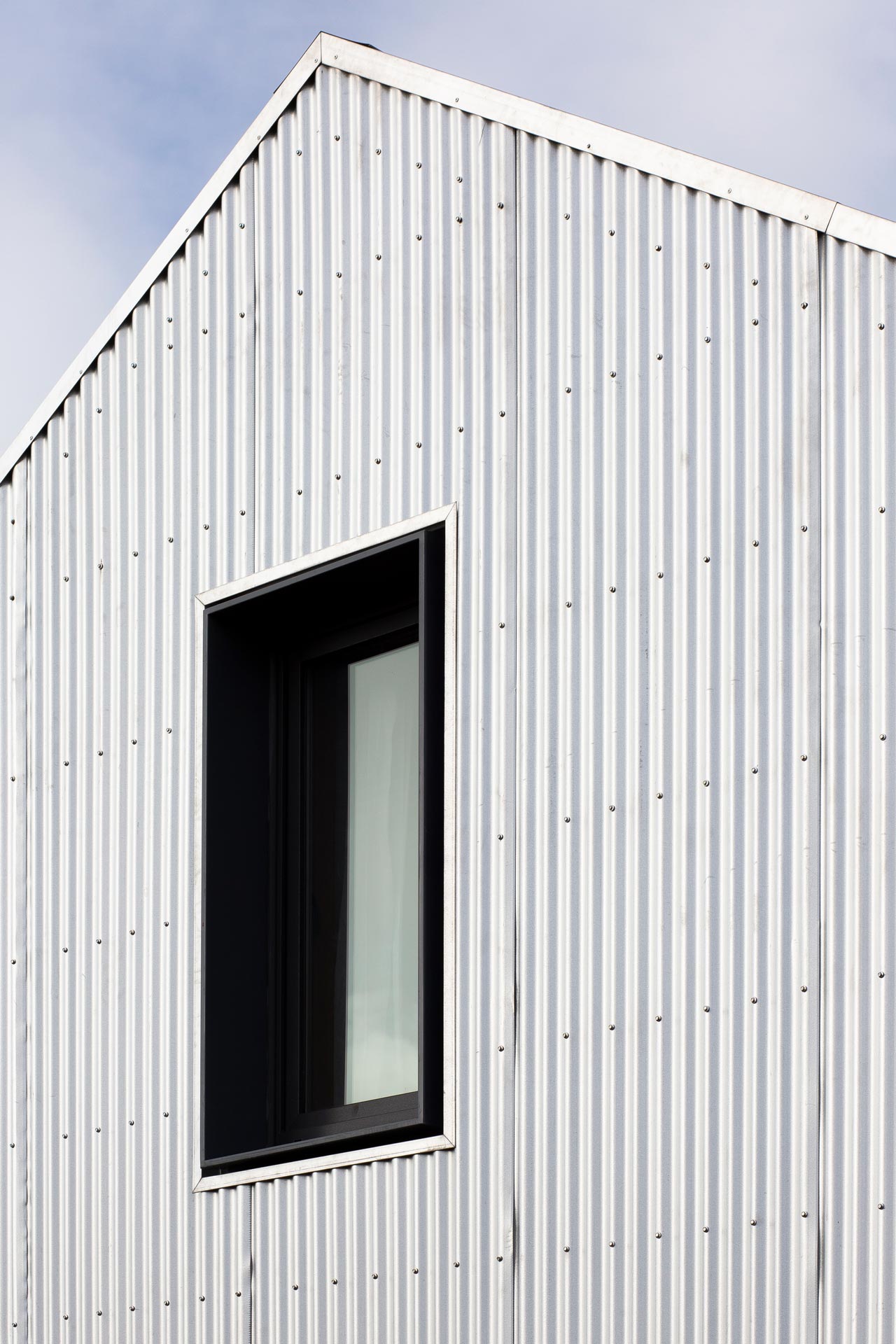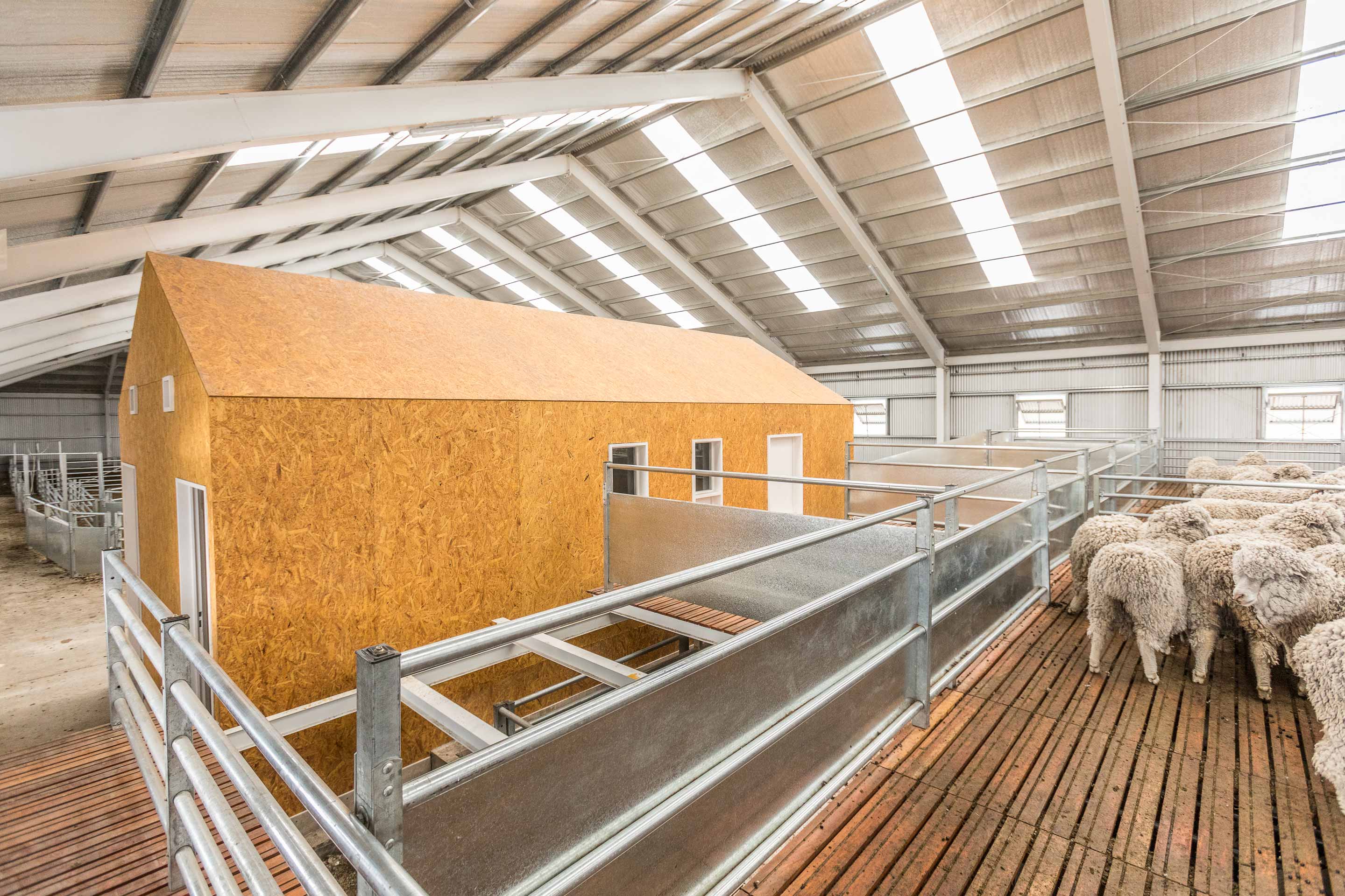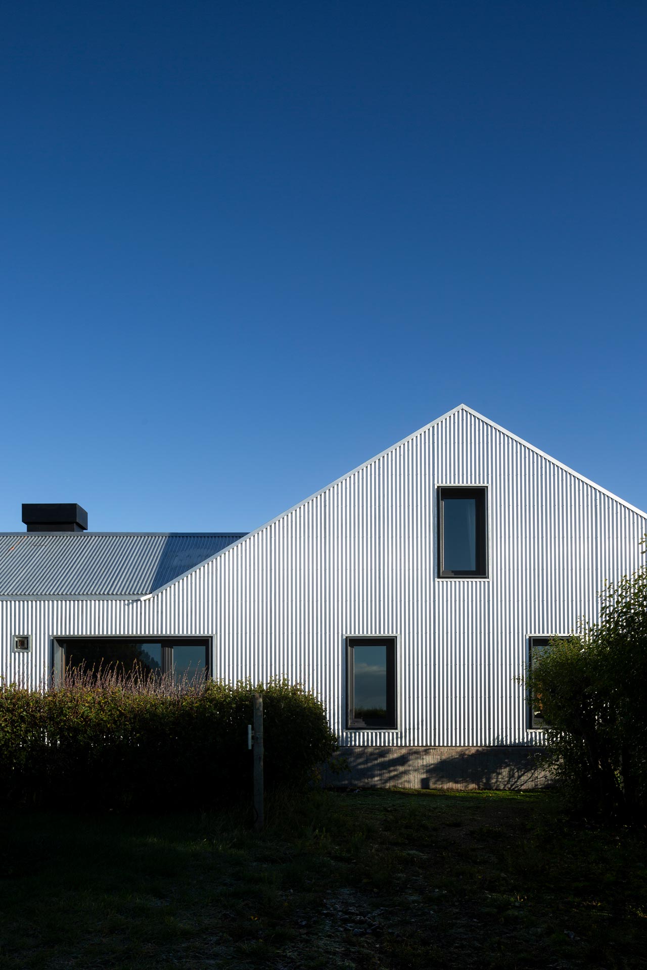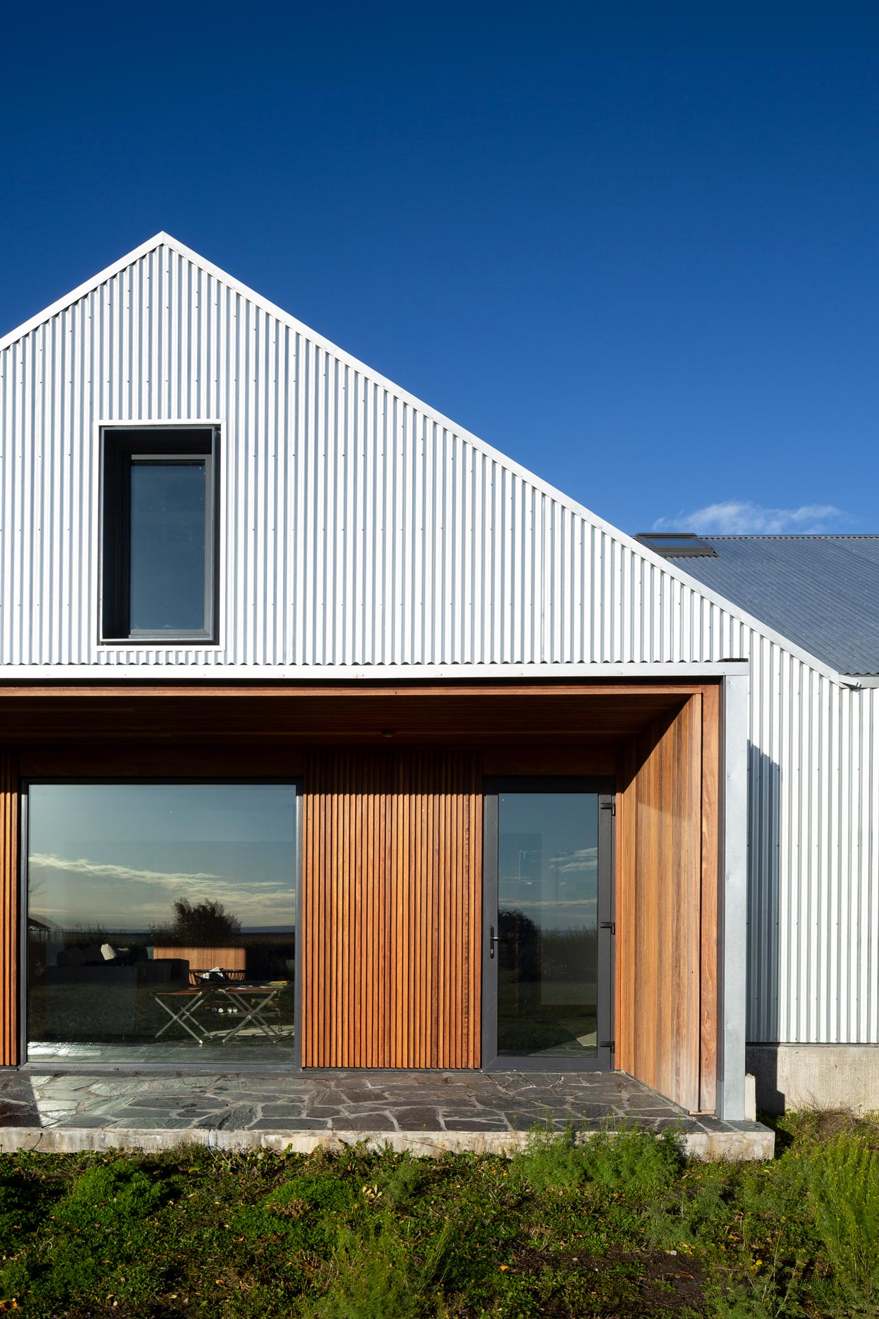 Alongside these well-defined variations were contrasts in the materials used, between the warmth of the wood which is predominant inside (and which can be seen outside in differing amounts) and the hardness of the corrugated iron which characterizes the exterior aspect. The largest amount of wood is in the family house, and there is progressively less as the buildings become more utilitarian, until it disappears completely in the sheep-shearing shed.