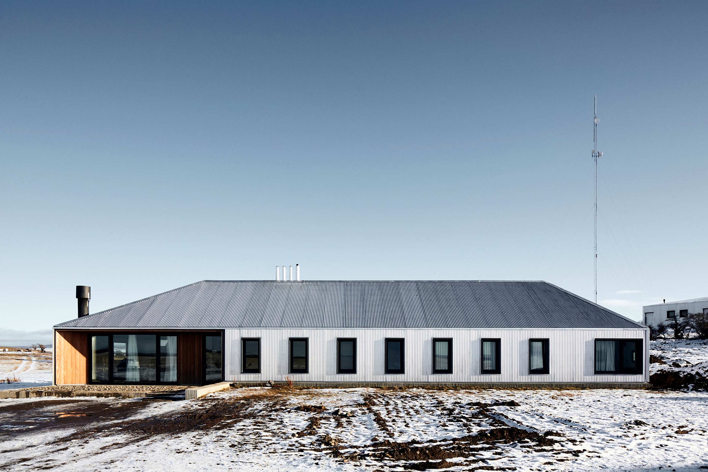 The layout of the complex is based on the model of a compact village, characteristic of the settlements of the region, where the utilitarian buildings and accommodation blocks are grouped together for protection against the rigorous climate of the Patagonian Desert. The buildings use industrial metal and wood structural systems, clad with corrugated steel sheeting, in a similar way to the original used by the pioneers of the region and addressing the same problems of logistics and the scarcity of local resources that existed at that time.