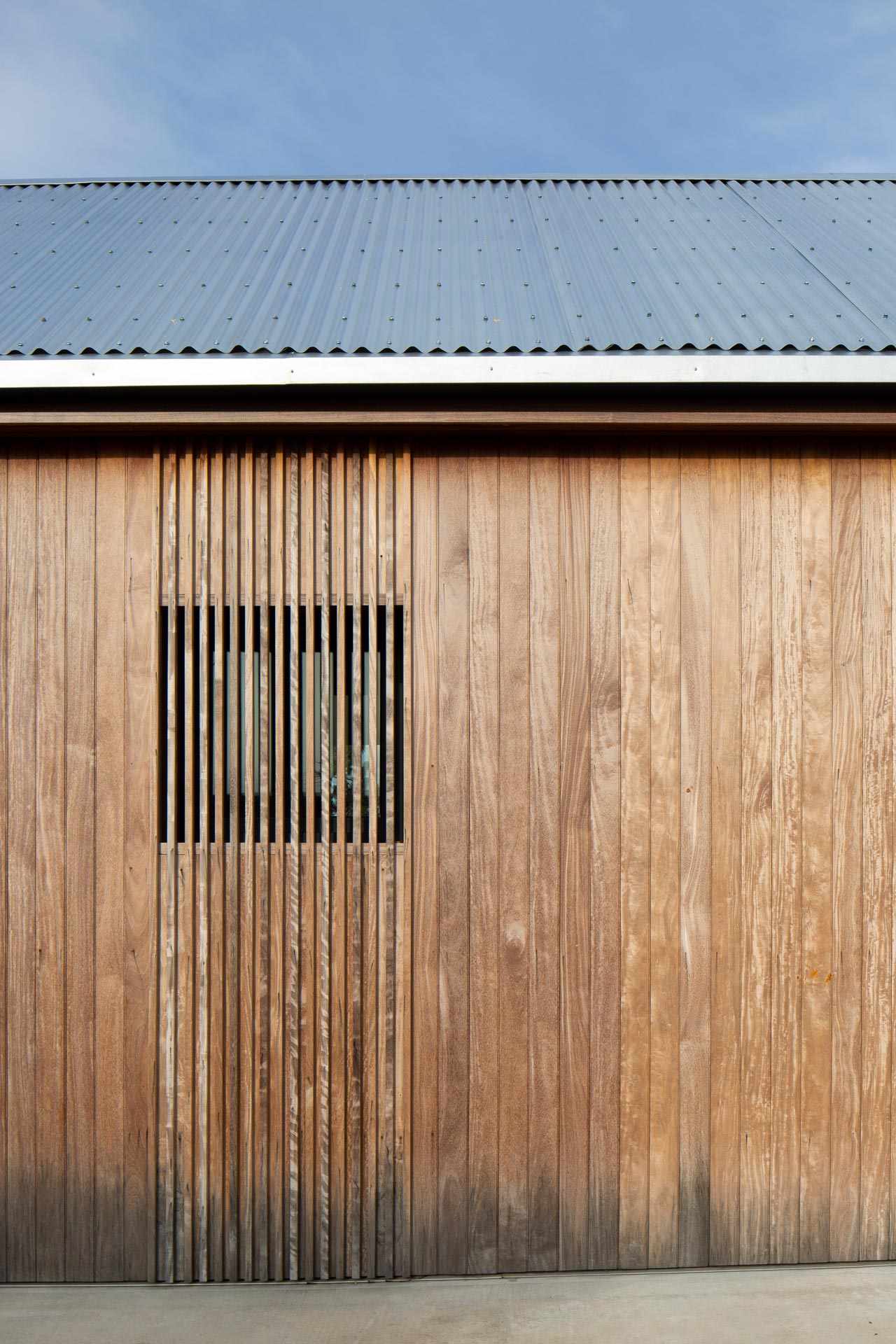 The architectural language of each part of the whole developed well-defined variations on the theme of sheds with corrugated roofs, according to the function and character of the different constructions. There are simple forms like that of the sheep-shearing shed, and other, more complex forms like that of the family house.