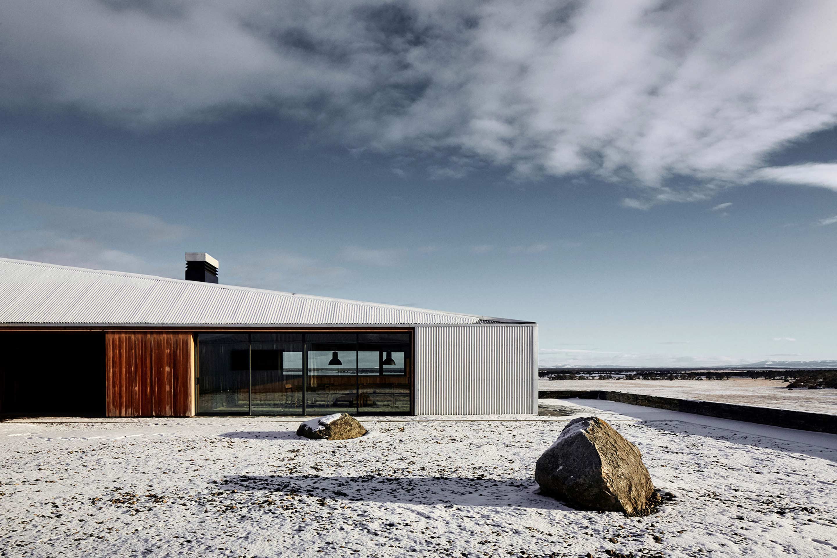 Inspired by this unique setting, the project revisits the traditional sheet metal construction style, a legacy of the first settlers, adapting it to current technical and functional conditions.
