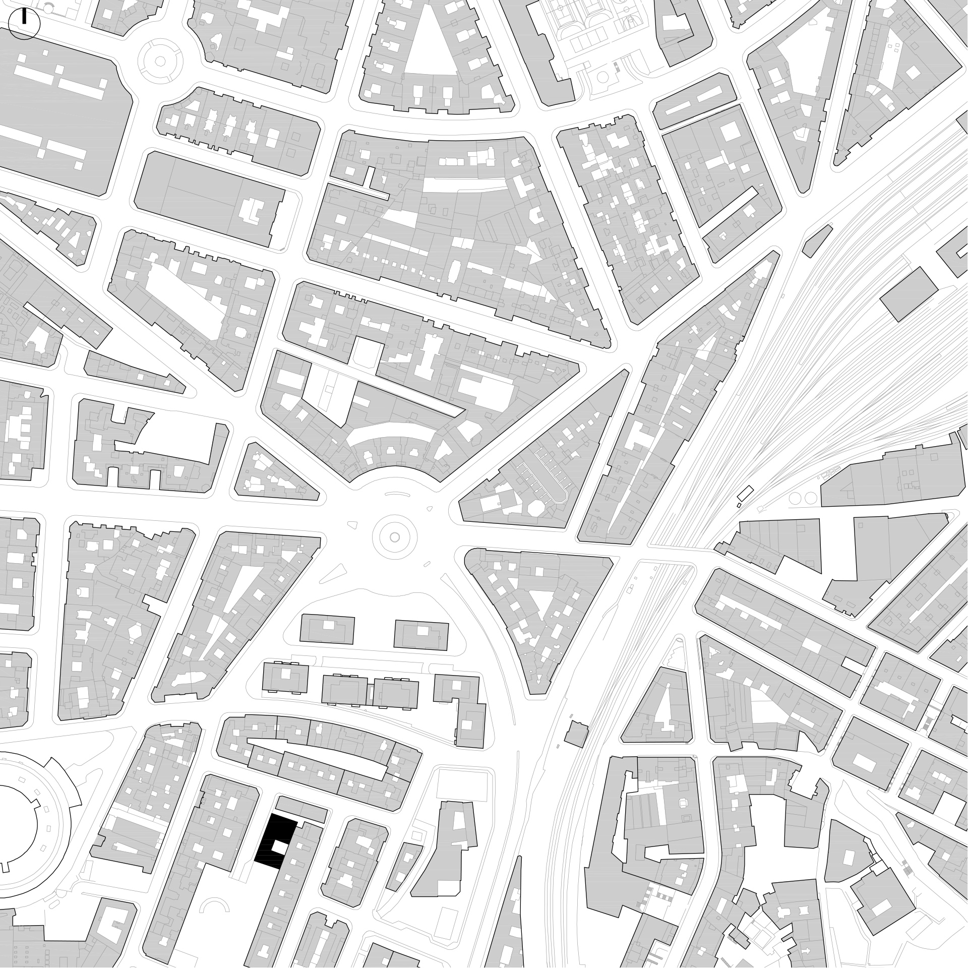 The coexistence of the existing structural rhythm with the modulation established for the rooms greatly restricts the position and size of the openings in the façade, which react more randomly when they are freed from these restrictions in the southern corner of the façade to offer a more dynamic image towards the square. The external joinery is arranged in external beams to emphasize the laminar character of the new façade.