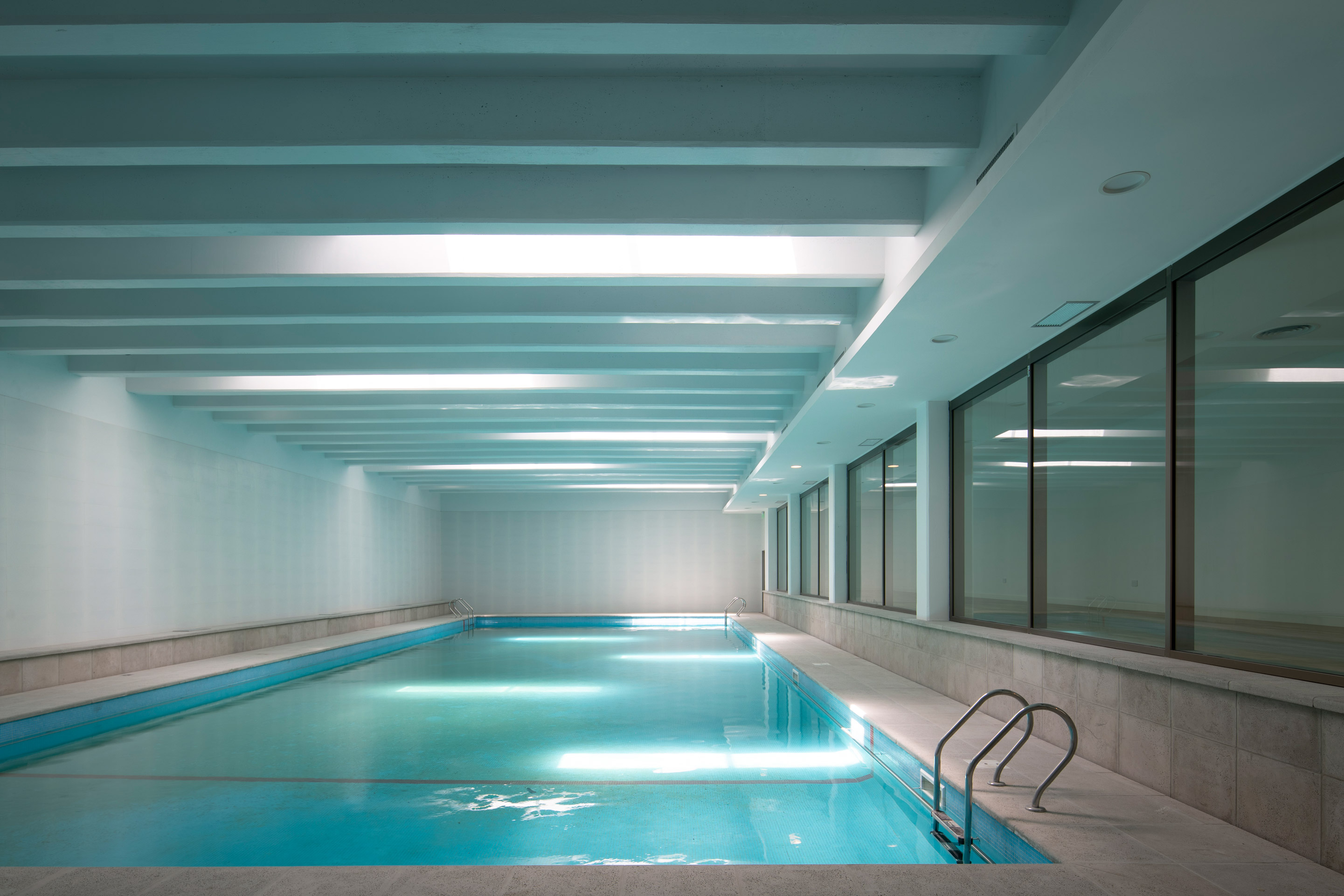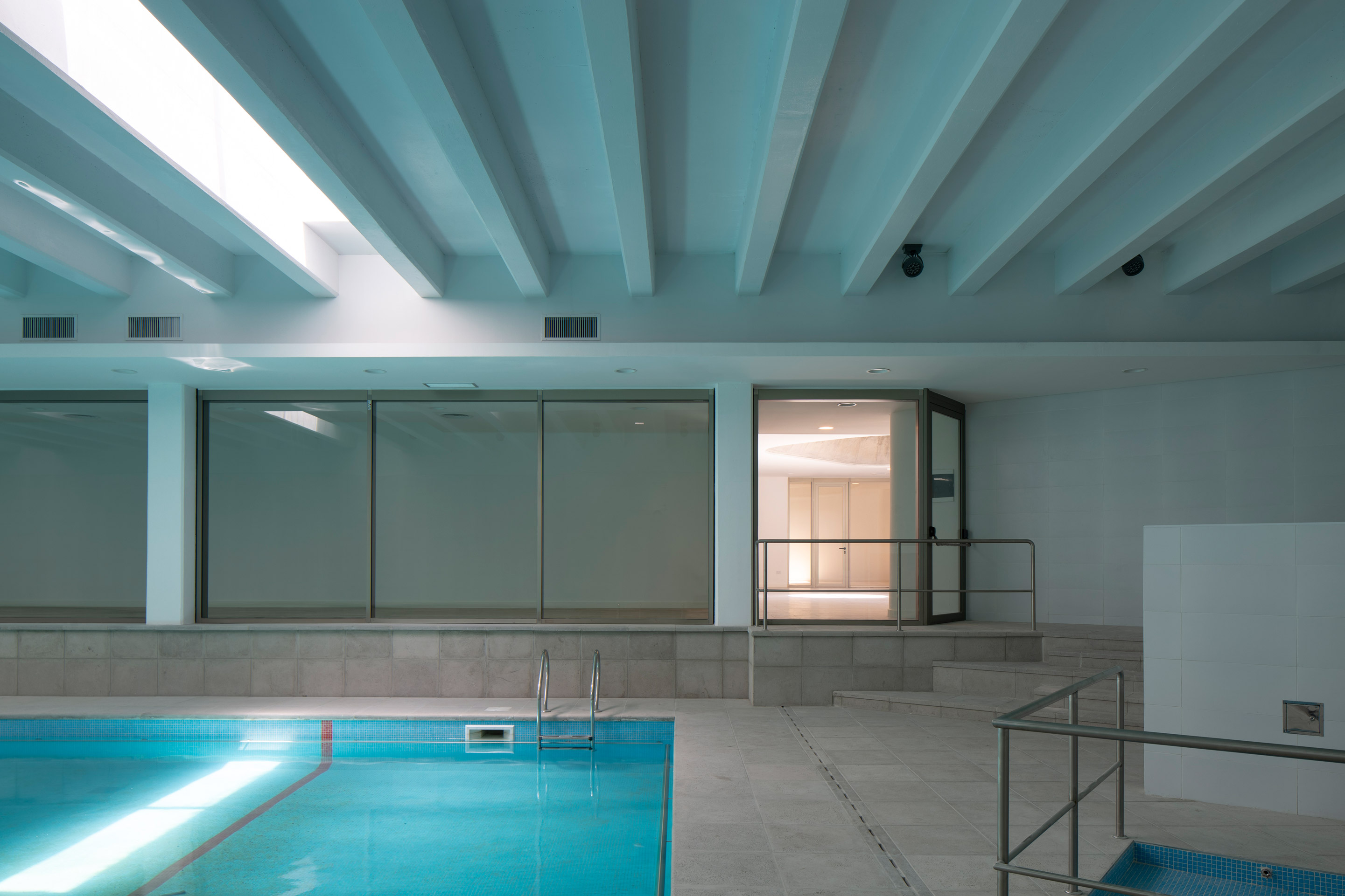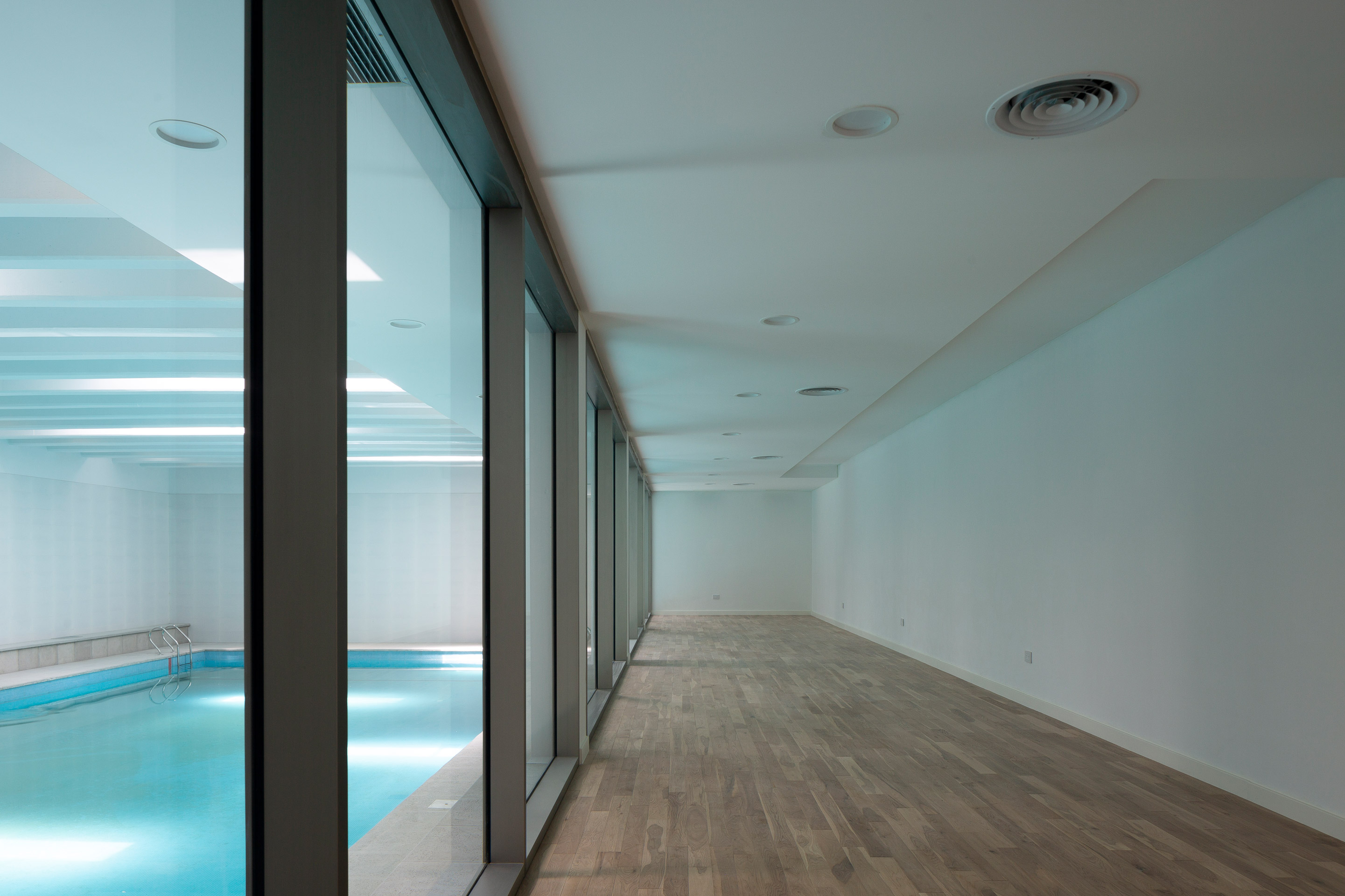 The activities of the old club are renewed and moved to a basement under the garden, illuminated by large skylights, forming a completely new sports centre, with an indoor pool, gyms and shooting range, with independent entrances and access to the new parking accommodated above the Subway tunnel that crosses the plot.
