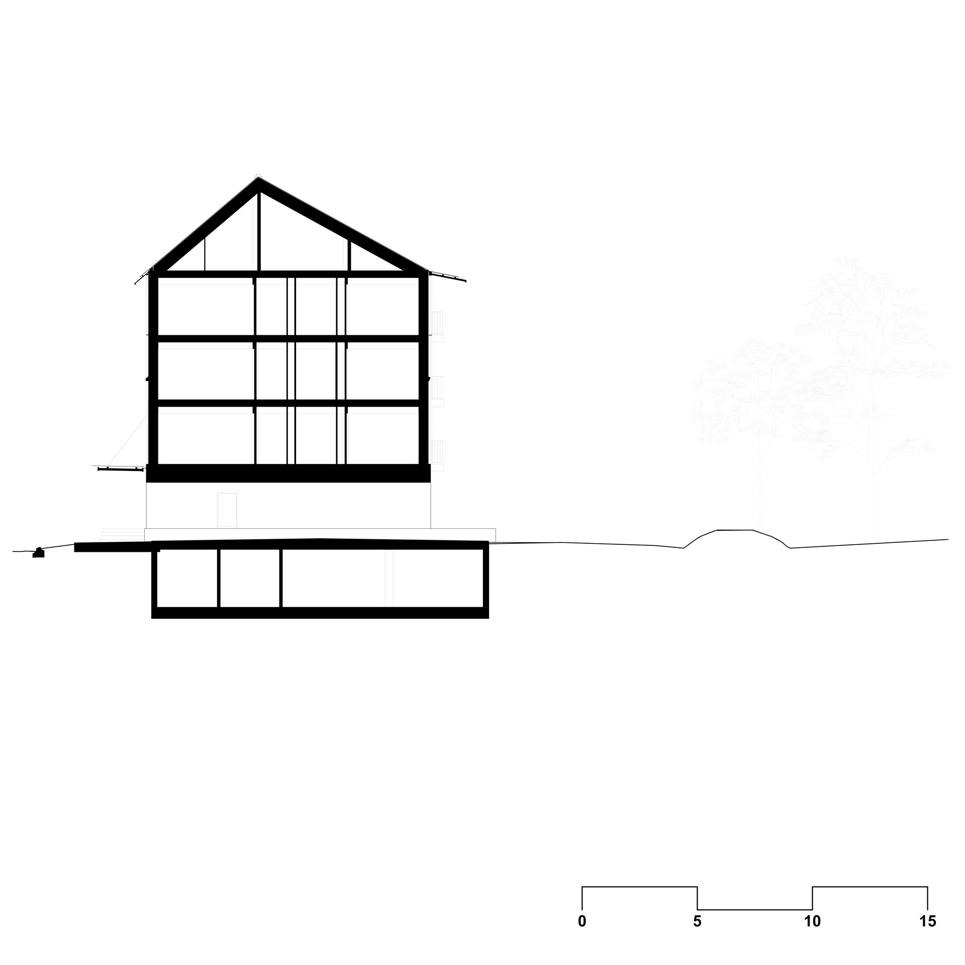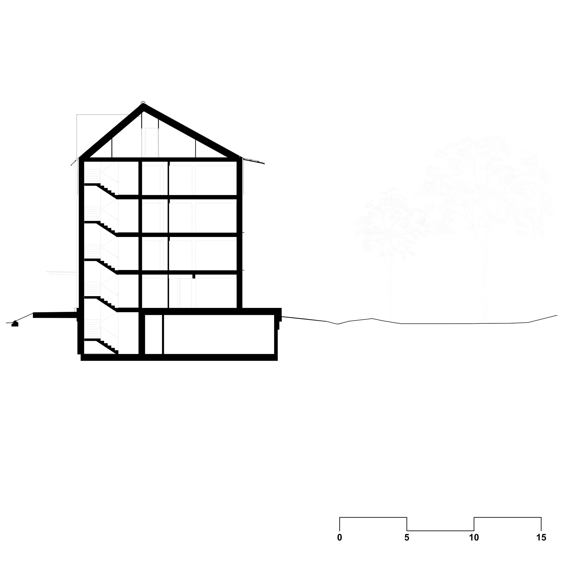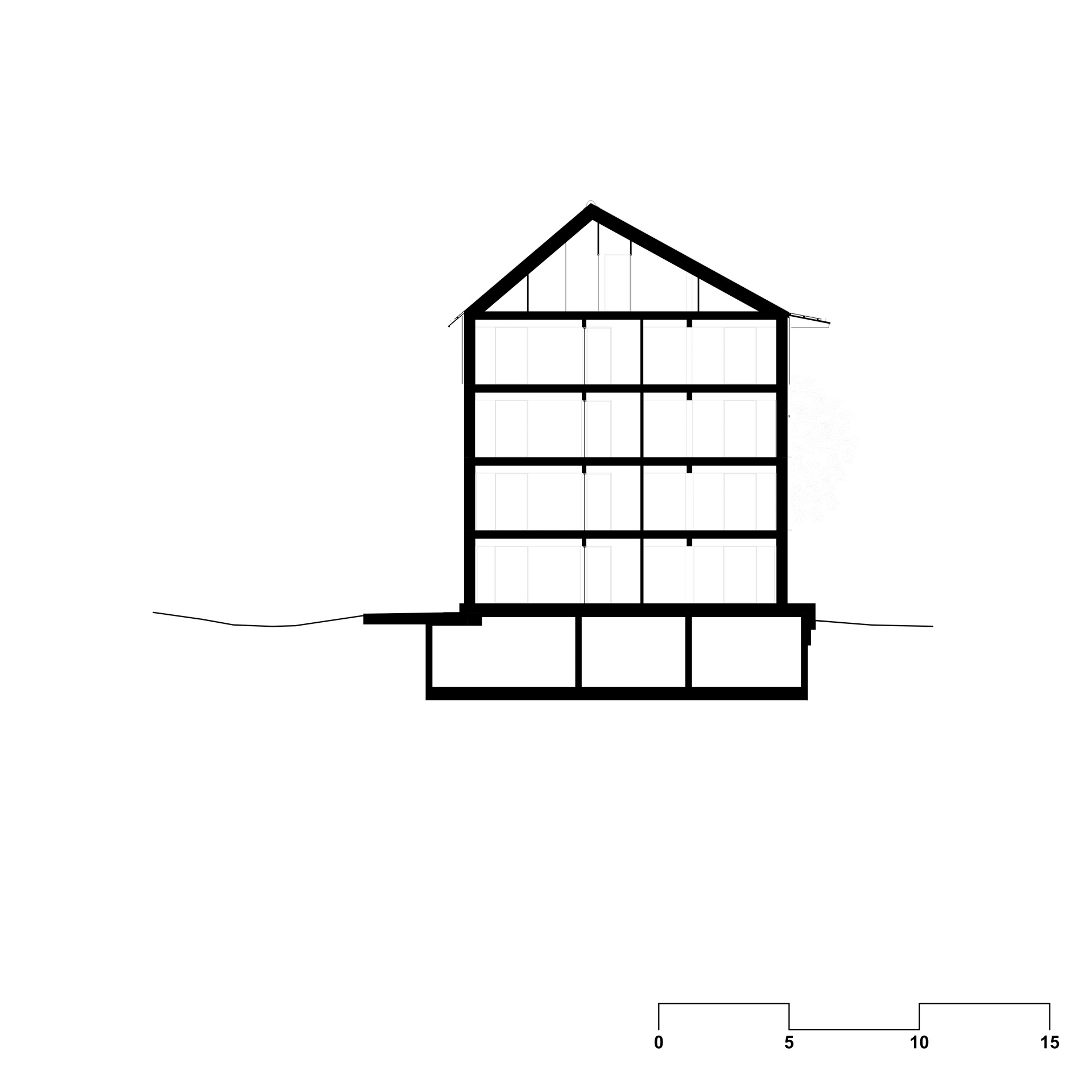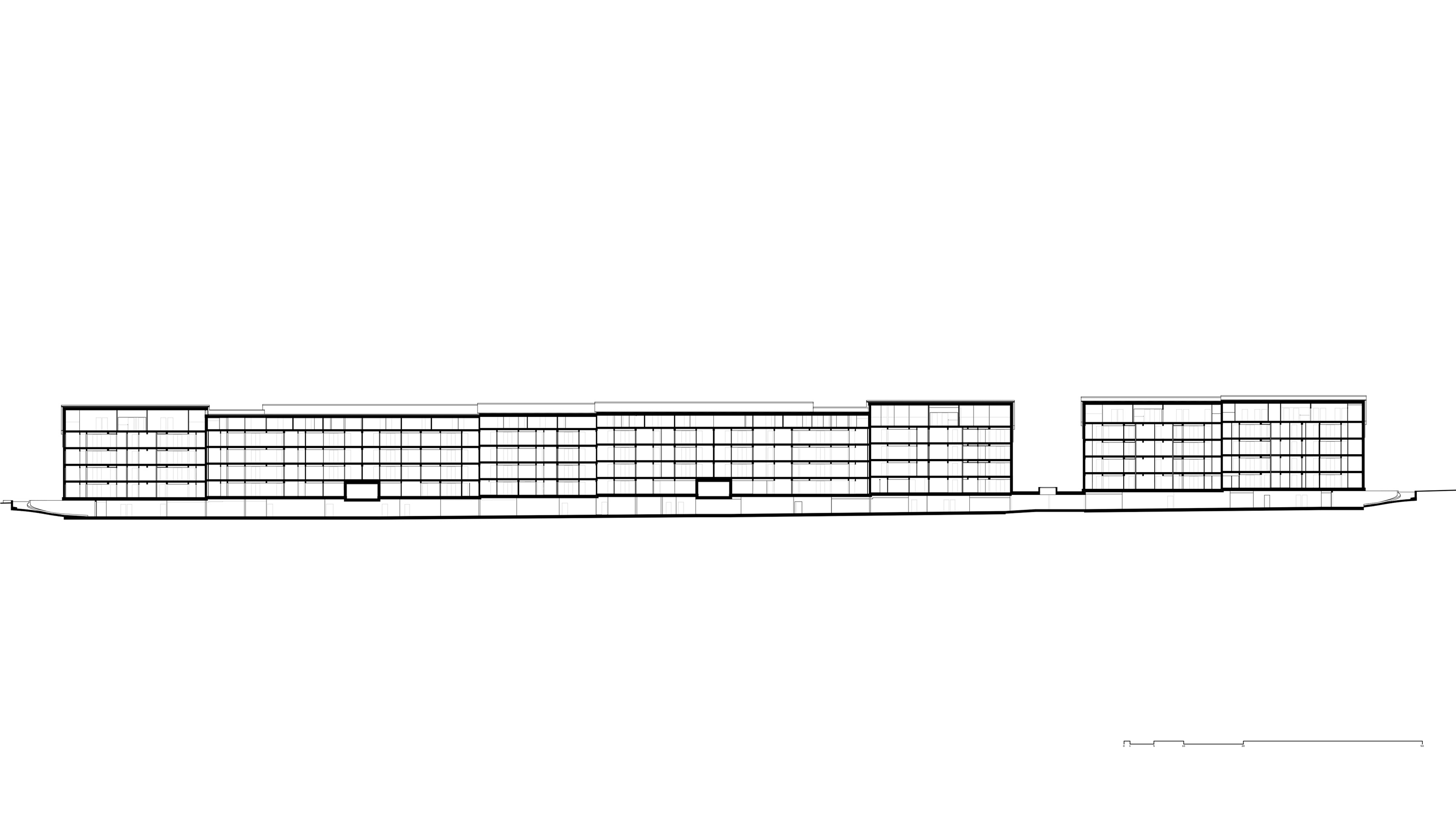 The project, which comprises 95 dwellings, consists of long, slightly fragmented linear volumes, reducing the scale of perception. The buildings are three storeys high with a ground floor and an attic floor housing storage rooms, laundry rooms and technical facilities, all built on a narrow basement. The entire above-ground structure is made of wood, with the exception of the stairwells and lifts, which reduces the load on the basement and considerably reduces the number of piles and the size of the concrete structures in the basement. These construction and structural choices provide economical and sustainable solutions, with a very interesting grey energy balance.