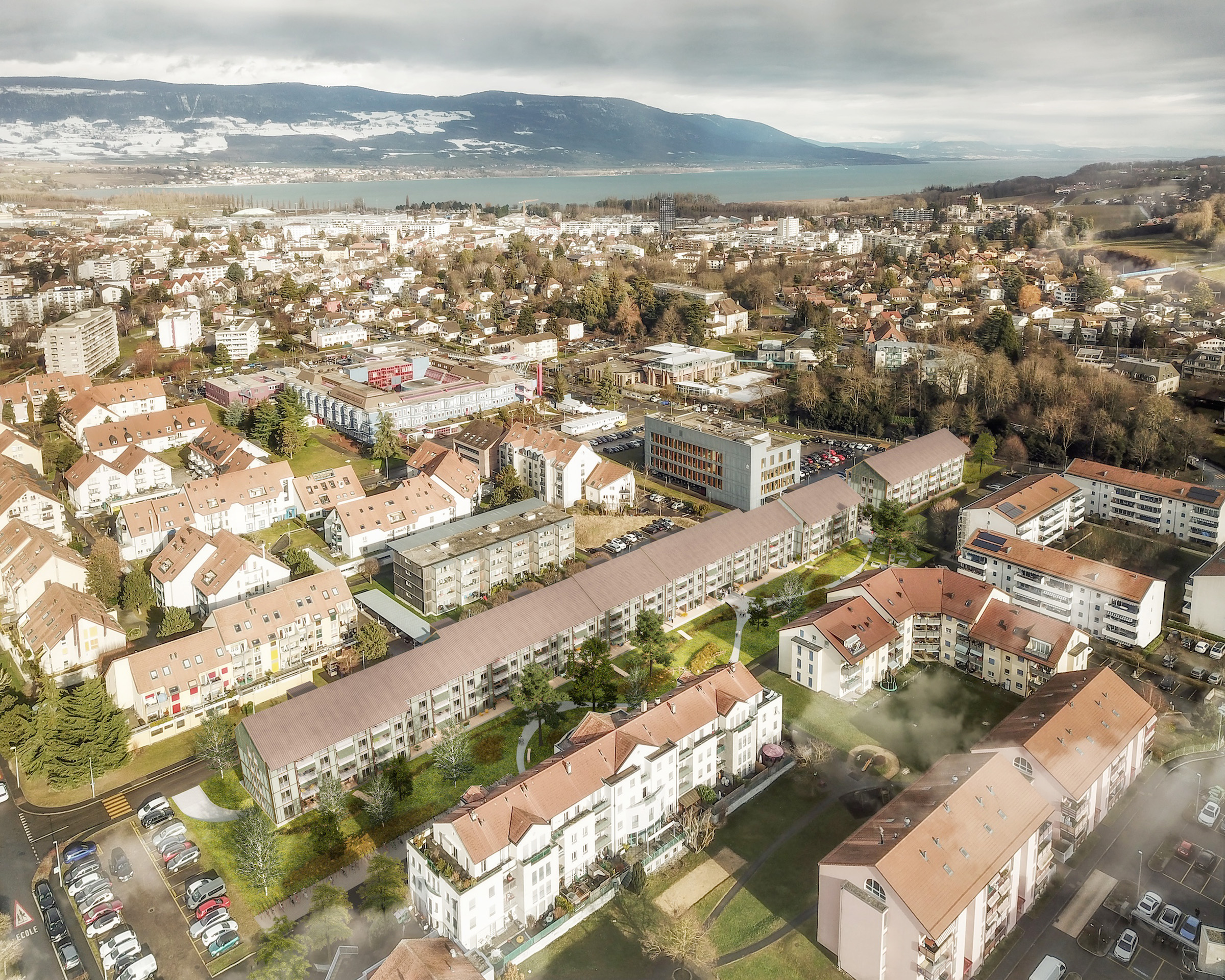 Significant typological work has been carried out to offer versatile and welcoming living spaces. The work on the structural framework, which is rational and adapted to the housing, provides the framework for a wide variety of dwellings, intended for seniors, families and young professionals alike. The flexibility of the rooms allows for multiple combinations and guarantees the long-term attractiveness of the flats on the local rental market.