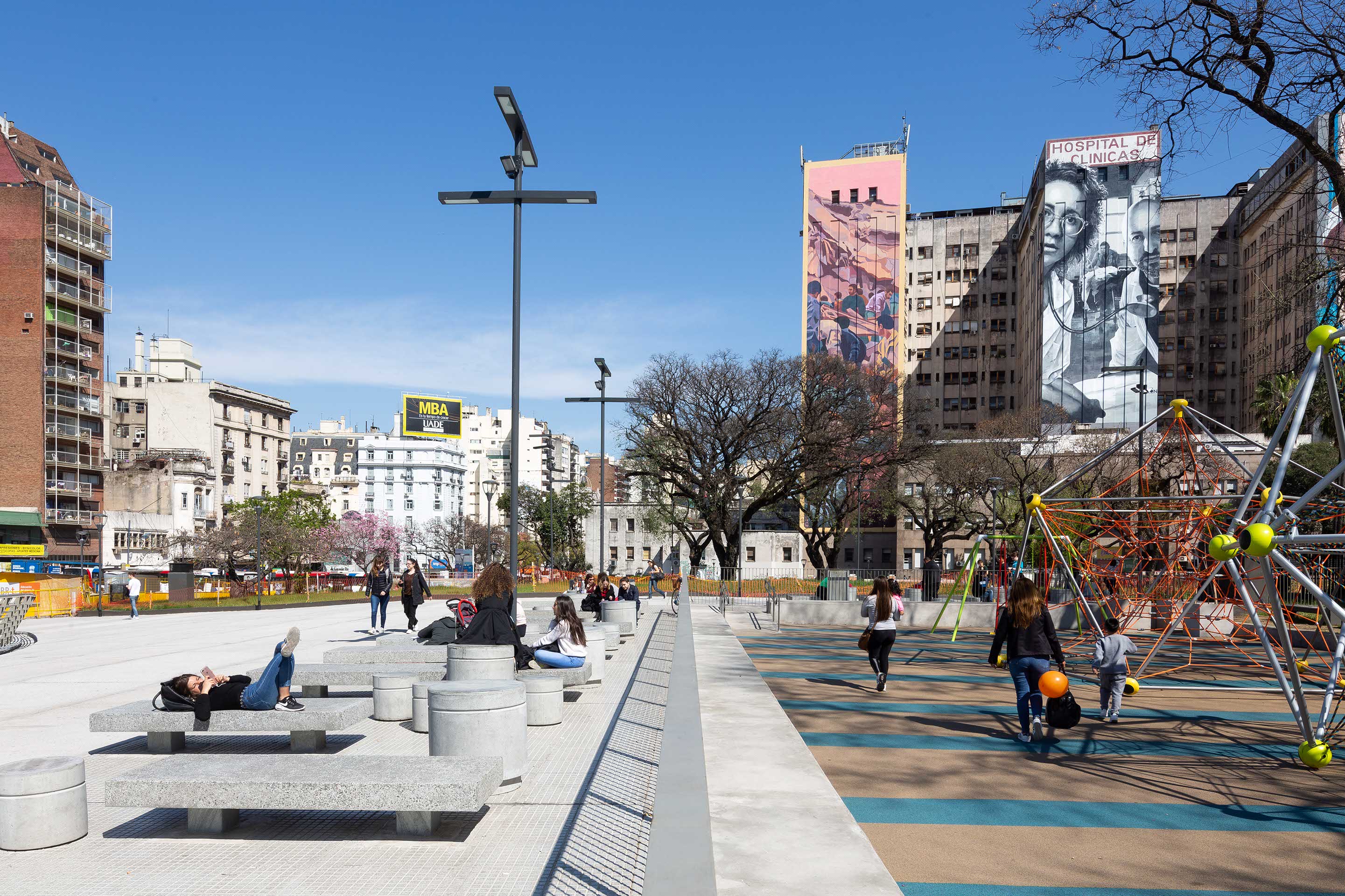 Surrounded by the Faculties of Pharmacy and Biochemistry, Dentistry, Social Sciences, Economic Sciences and Medicine of the University of Buenos Aires, which together with the neighbouring José de San Martín Teaching Hospital accommodate approximately 100,000 students, the square was progressively disfigured by partial and uncoordinated actions that fragmented its spatial and environmental condition, making it uncomfortable and dangerous.