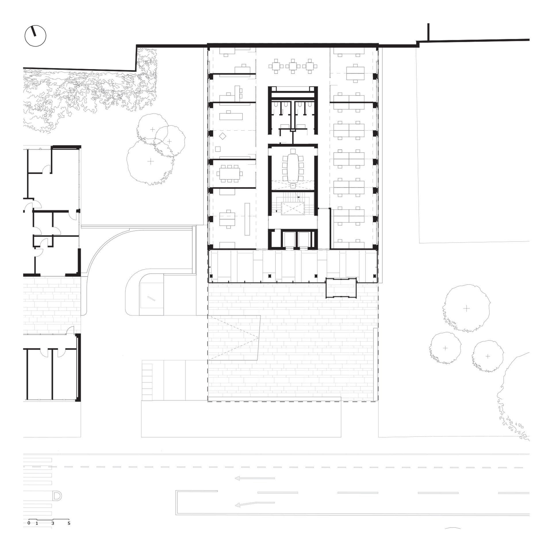 The integration of a new building on Avenue de Rhodanie between two existing developments was quite a contextual, architectural and structural challenge. Firstly, the wish to be volumetrically west-aligned with the building which our firm designed in the 1990s as the administrative headquarters for Golay Buchel and, secondly, east-aligned, to maintain the perspective over the premises of the Maison du Sport International (MSI). Rhodanie 58 is an extremely simple yet rigorous volume which fits in harmoniously with the Avenue de Rhodanie environment.