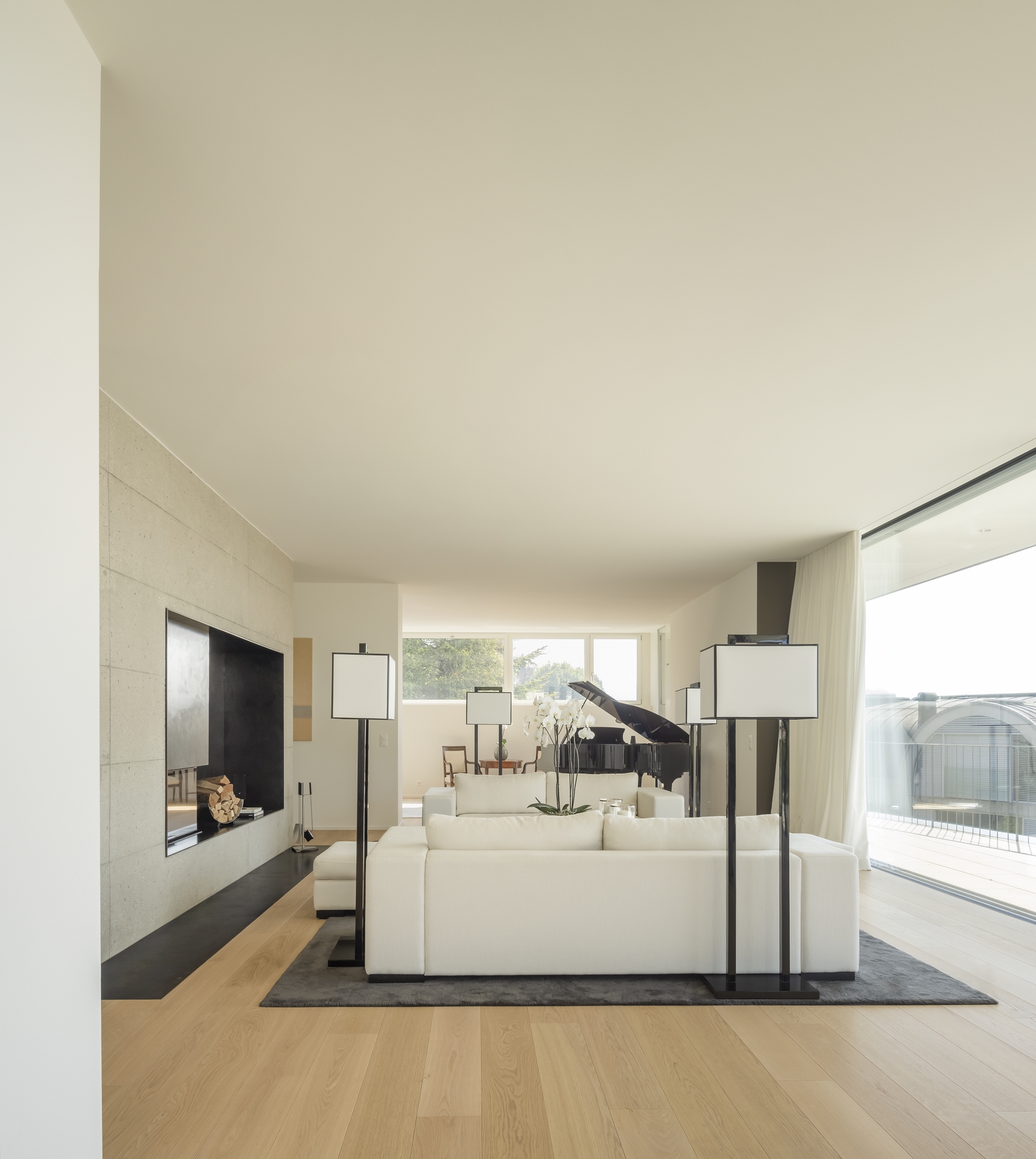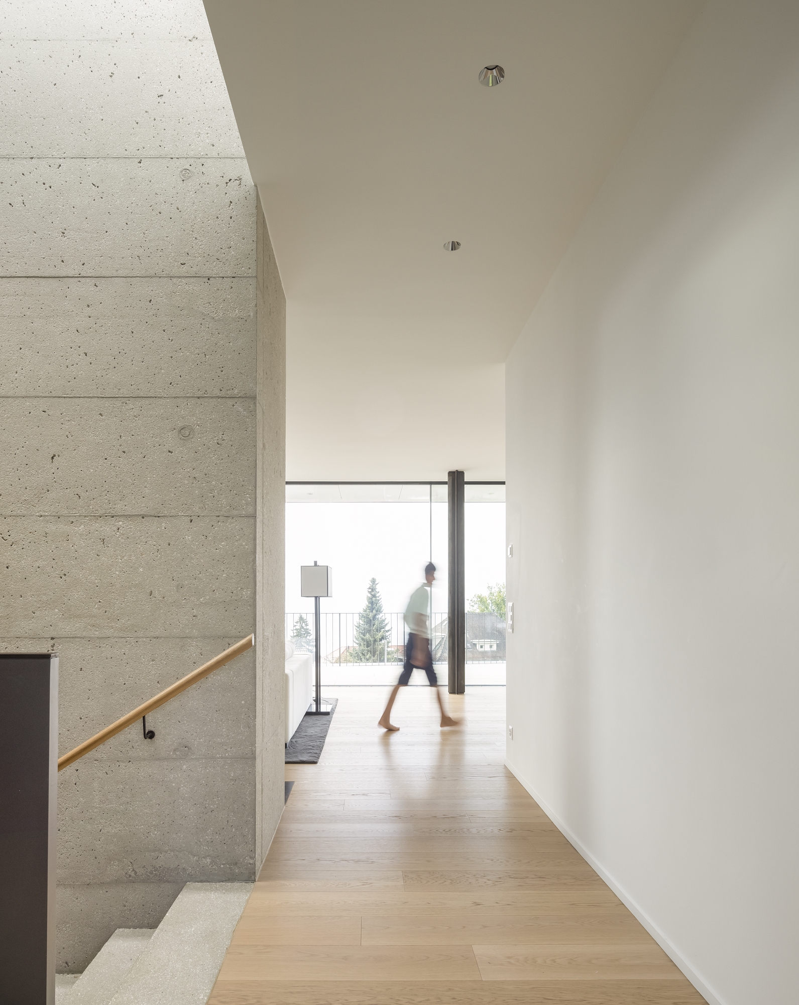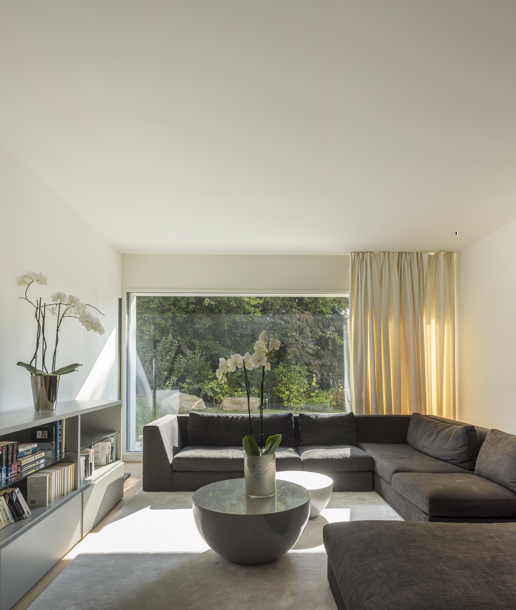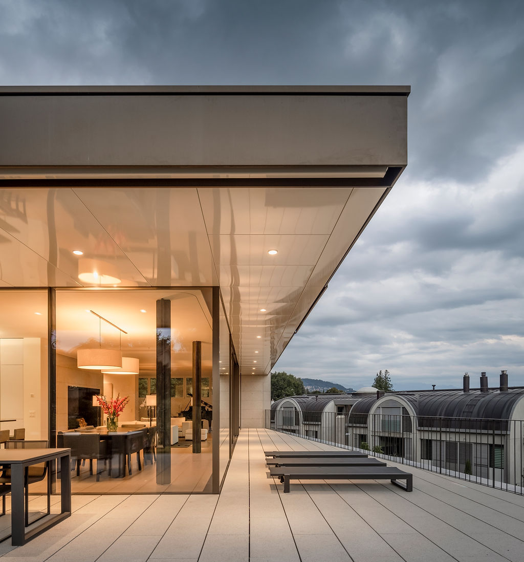 Located on a sloping plot facing the lake, the villa occupies a pointed parcel resulting from the division of a larger property. During the preliminary studies, the layout of the house was carefully analysed, in plan and section, in order to optimise and enhance its relationship with the view of the Lake Geneva landscape, while preserving the openness and views from the villa located to the north of the original plot.
